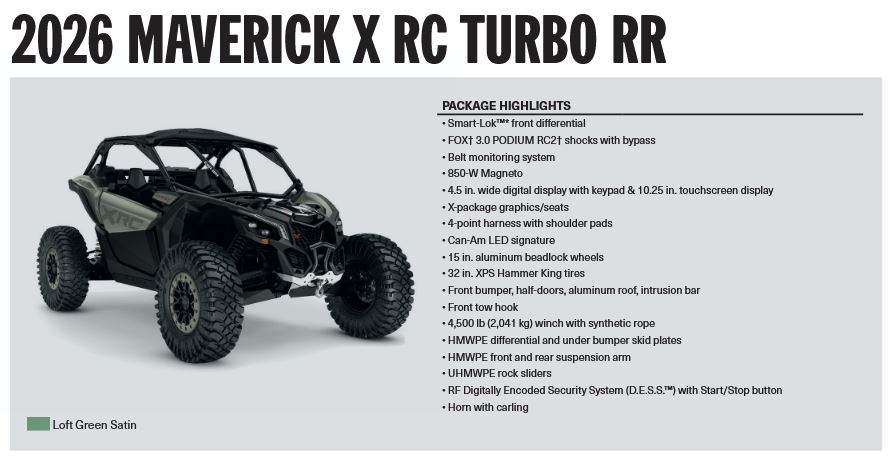 Can-am Maverick X RC TURBO RR Loft Green Satin 2026