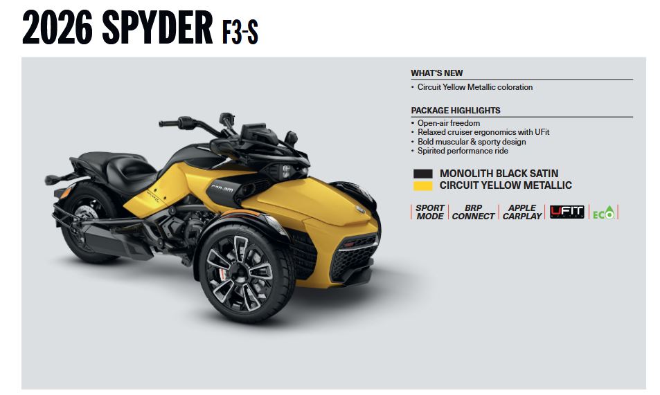 Can-Am Spyder F3 S ACE 2026 MONOLITH BLACK SATIN