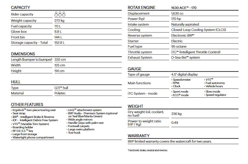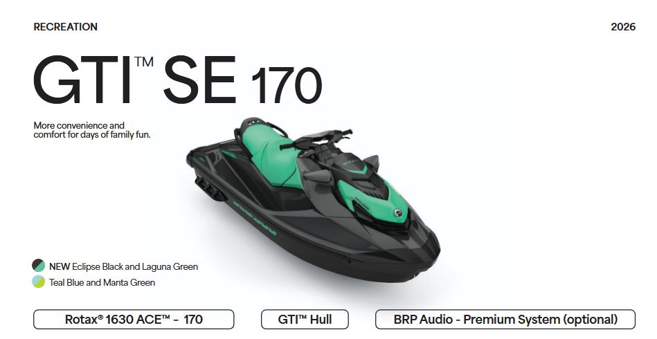 Sea-Doo GTI SE 170 NEW 2026 Eclipse Black and Laguna Green