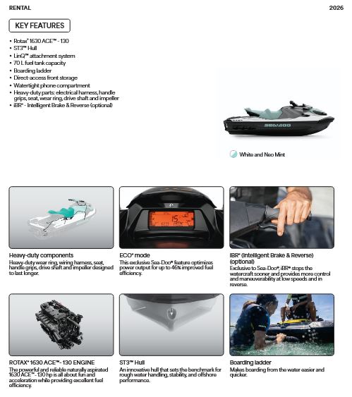Sea-Doo GTX PRO 130 Bez IBR 2026 White / Neo Mint